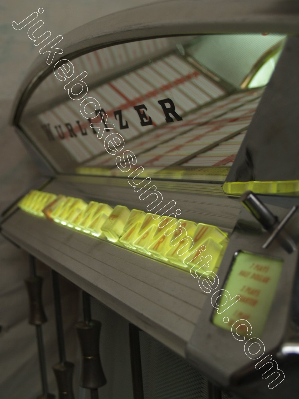 1-818-366-9400, 10AM-6PM P.S.T. Mon.-Sat. or e-mail us: Info@JukeboxesUnlimited.com.